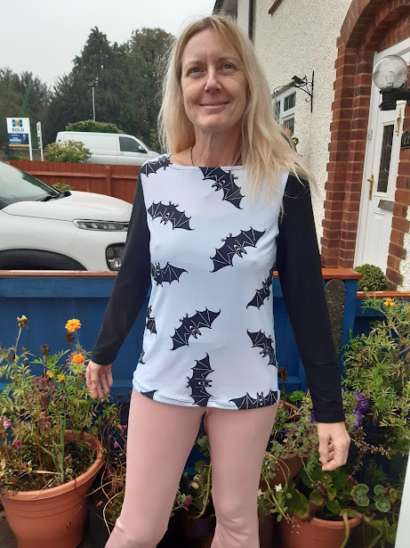 bat bikini back in the summer. Its Butterick 5562 but with the most basic version of the sleeves. Its meant to have a collar on top but I have never yet made that I just seem to go with the basic boat neck long sleeved top and I love it. I used a contrast thick mesh for the